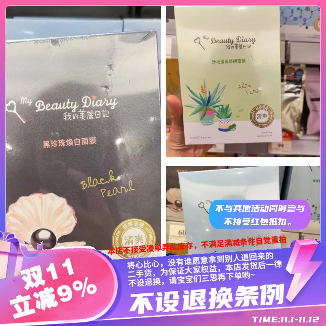 香港购 万宁我的美丽日记面膜黑珍珠玻尿酸芦荟三款补水保湿舒缓