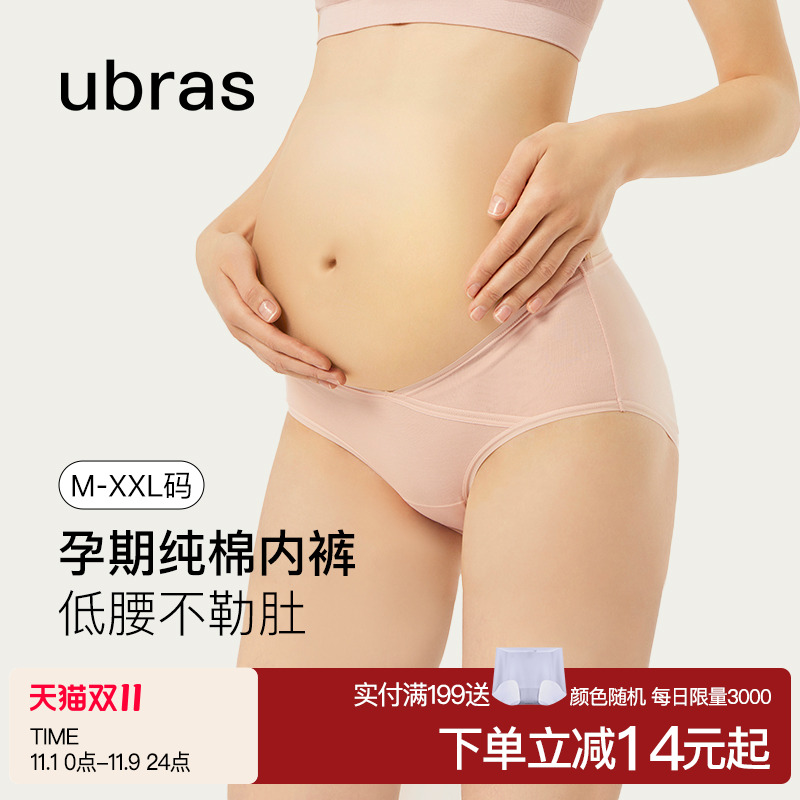 ubras孕妇内裤女纯棉托腹孕期专用舒适透气低腰三角裤女款短裤