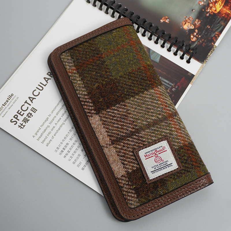 harris tweed哈里斯粗花呢羊毛真皮长款钱包女款卡包一体男士皮夹