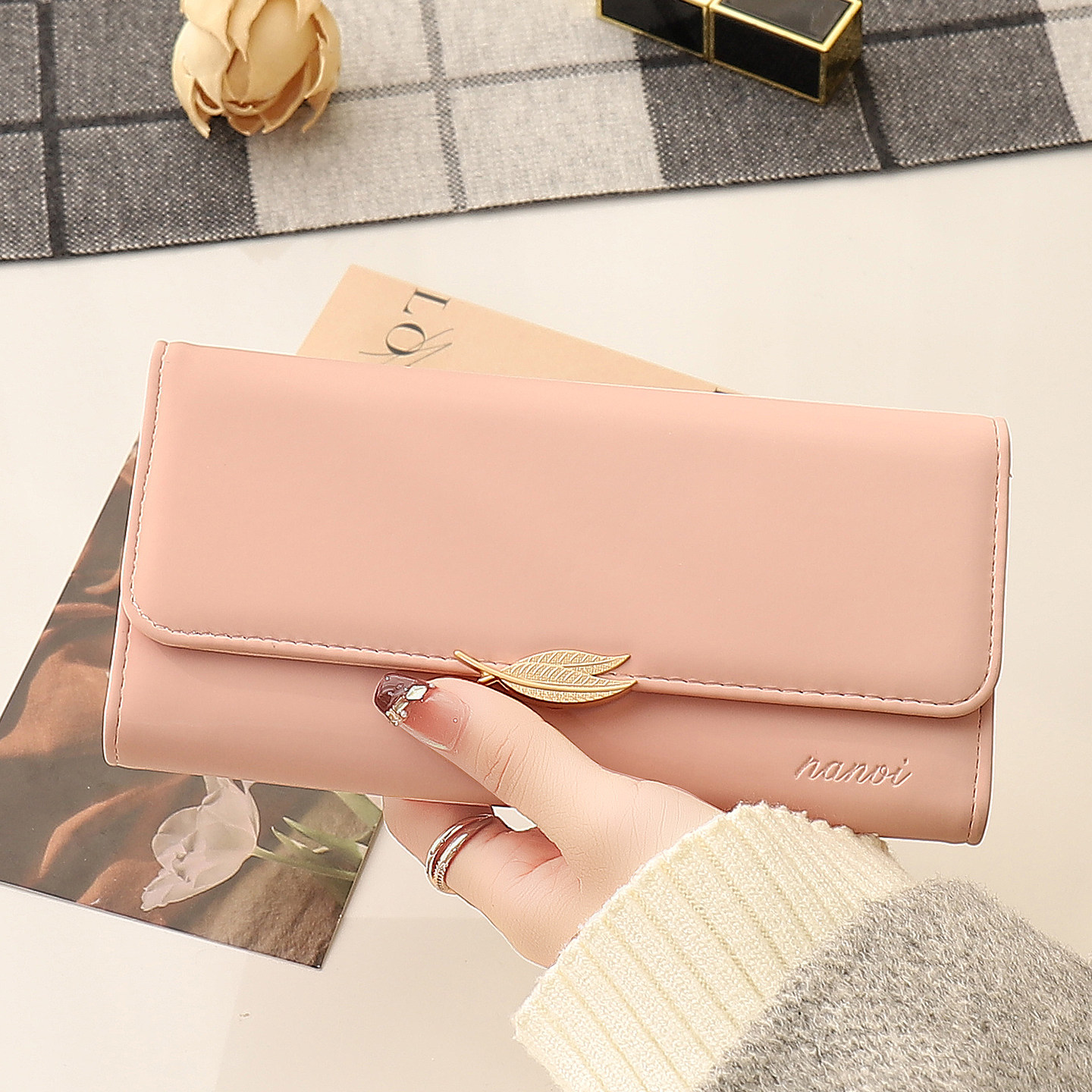 长款钱包女款2025新款大容量现金零钱包卡包小众叶子手机包手拿包