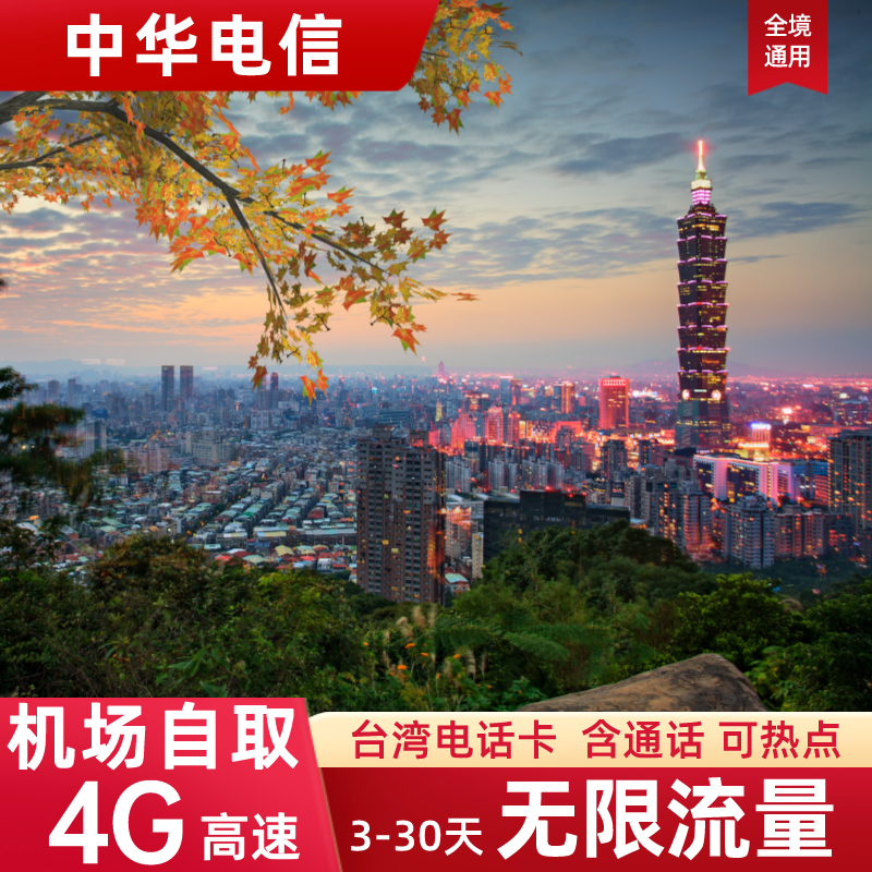 台湾电话卡无限5G流量上网卡中华电信台北高雄金门旅游手机SIM卡