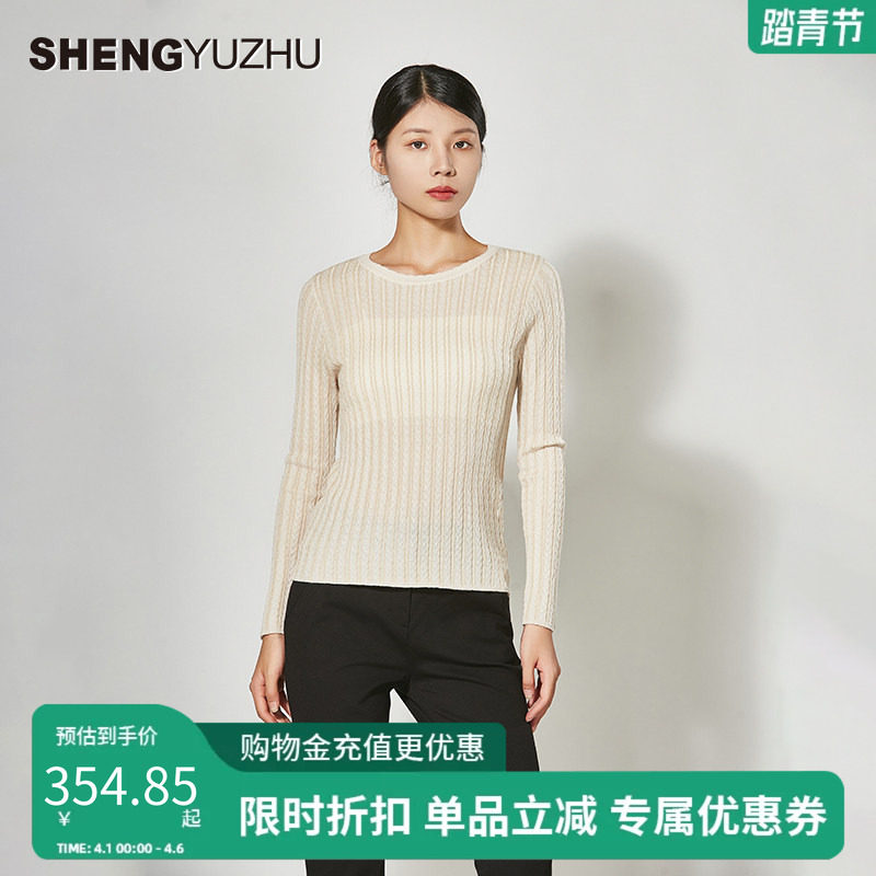 声雨竹旗舰店2025秋冬新款长袖套头针织衫女圆领常规袖舒适面料