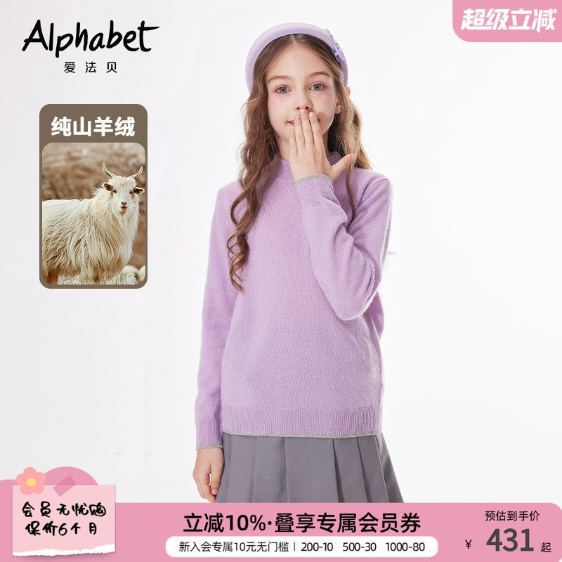 【100%山羊绒】爱法贝秋冬款女童毛衣简约打底针织衫高领长袖套头