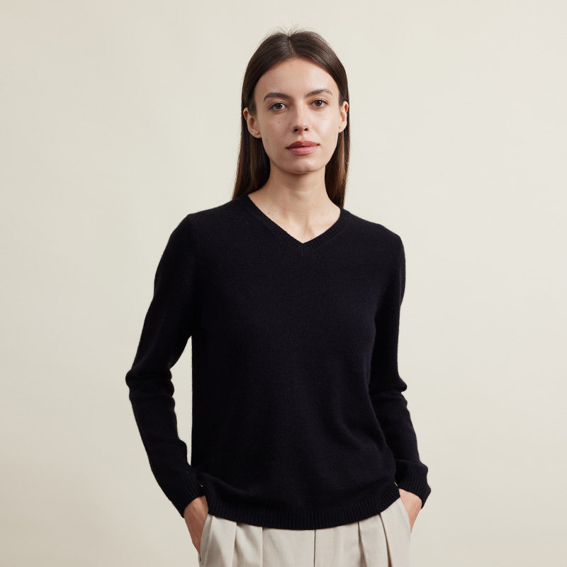 圣雪绒23秋冬新款女V领纯色混纺羊绒衫内搭通勤长袖套头针织衫