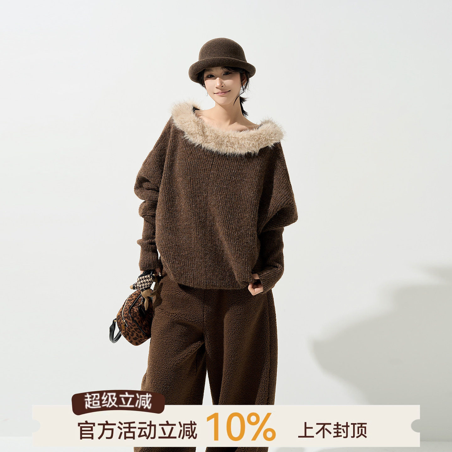 吴童童毛毛领长袖套头针织毛衣女秋冬韩系设计感软糯宽松保暖上衣