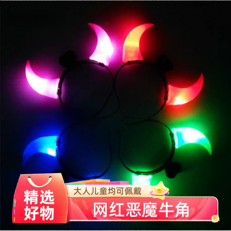 发光牛角头箍闪光牛角灯夜光牛角恶魔演唱会晚会年会舞会发卡头饰