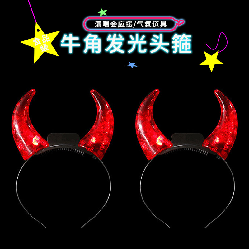 牛角发箍应援发光发箍年会晚会氛围酒吧气氛道具荧光头饰发亮头箍