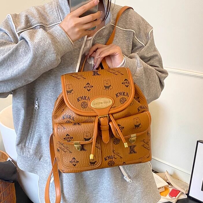 BM双肩包包包女款2026新款今年流行包包书包皮包棕色美式复古包包