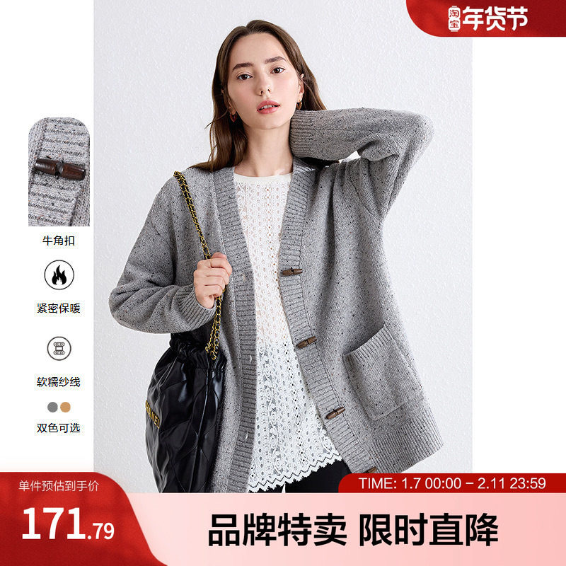 alex stevens慵懒风针织开衫女秋季外套薄款中长款外搭羊毛衫上衣