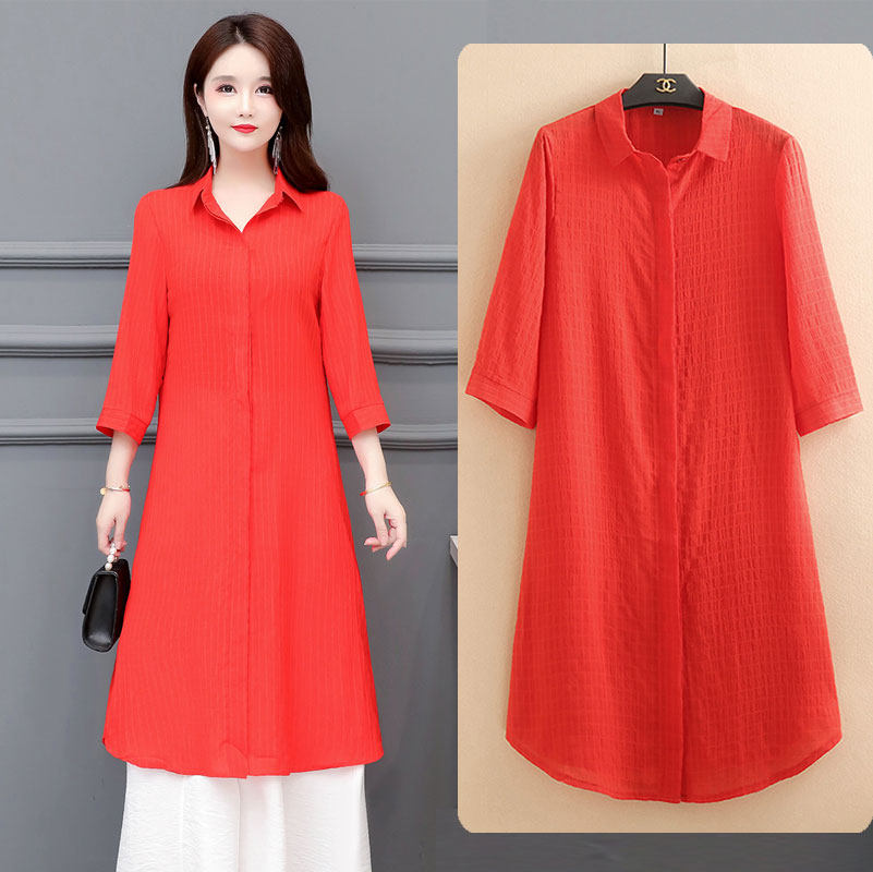 防晒衣女透气新款夏季薄款长袖雪纺衬衫中长款外搭开衫女微透外套