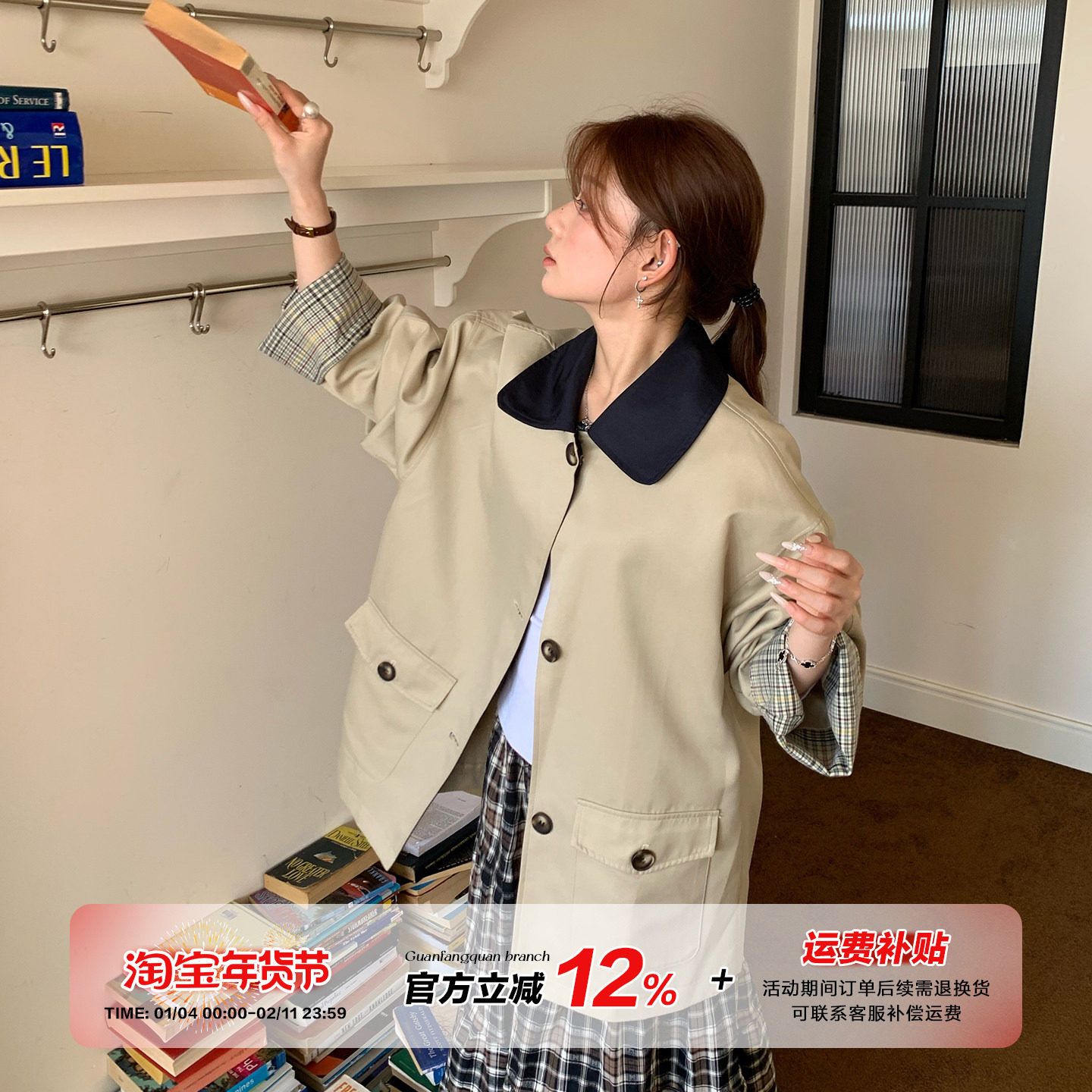 【清仓价】橘子树在哪儿韩版撞色风衣外套秋高级感外搭中长款上衣