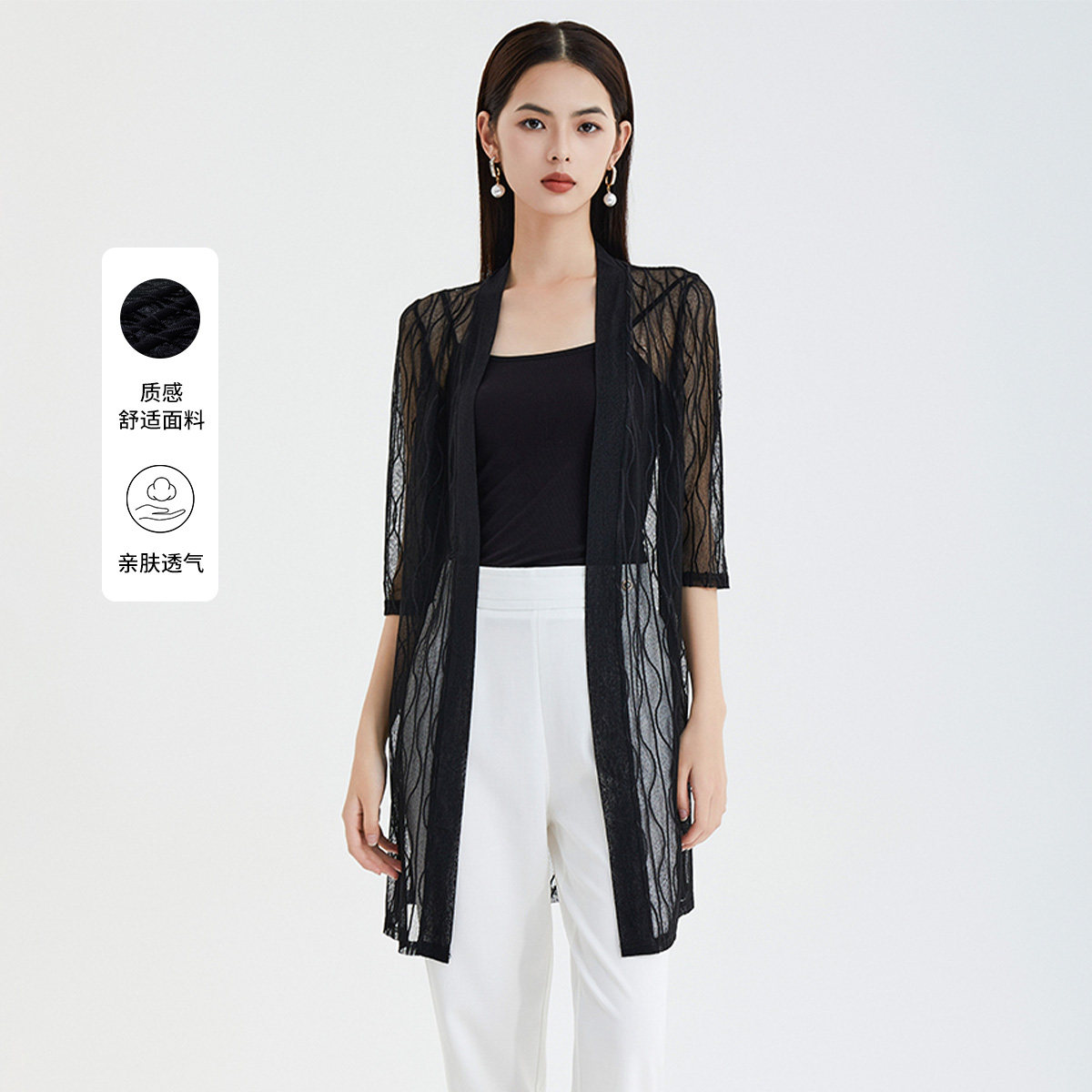 马天奴春夏新款中长款蕾丝开衫中袖遮阳衣空调衫外套外搭时尚百搭