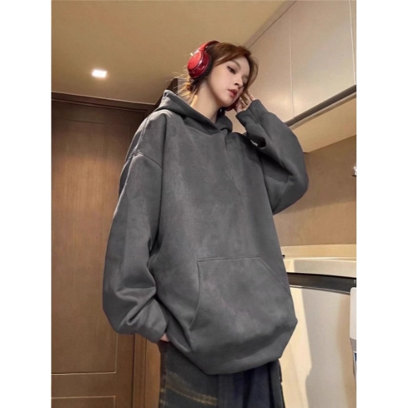 - 羊羔毛套头卫衣女