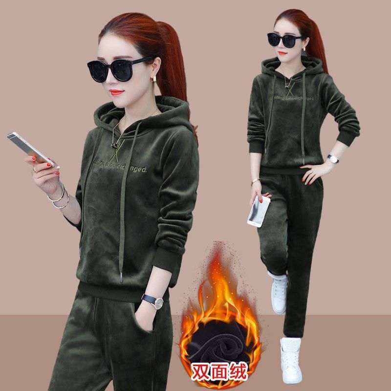 - 卫衣套装女冬加绒加厚 韩版