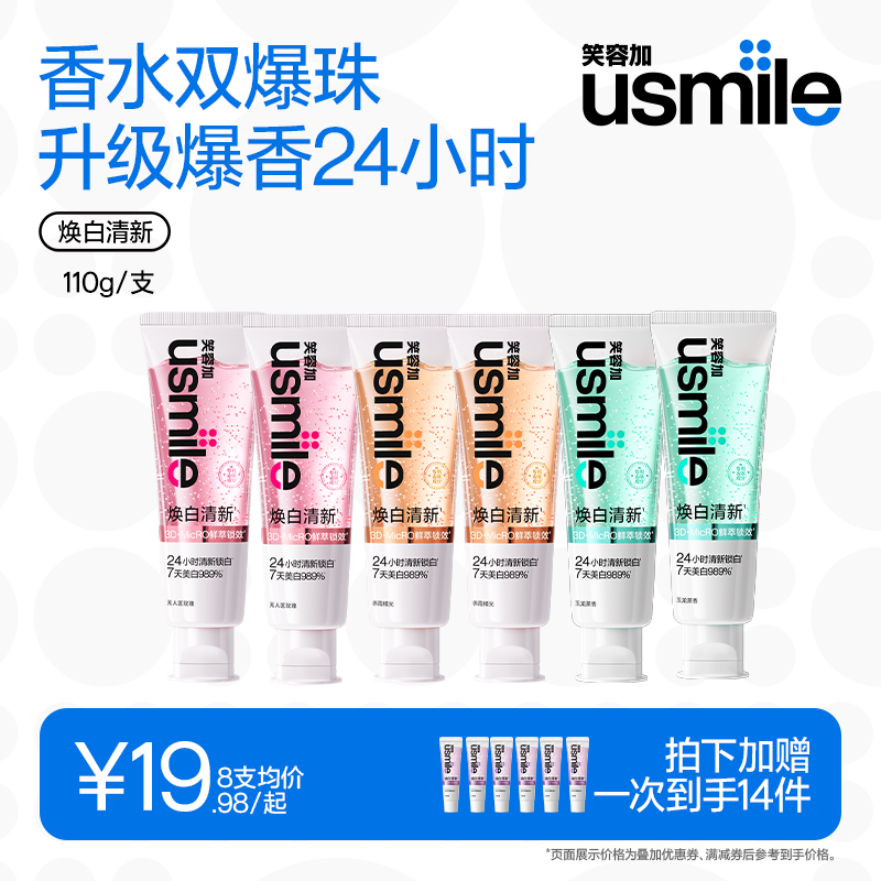 笑容加usmile焕白牙膏成人去黄去口臭美白含氟除异味口气清新专用