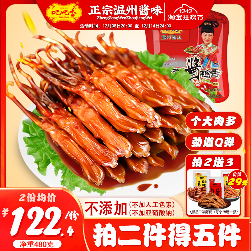 【吧吧香_精品大号酱鸭舌】净重480g 温州鸭舌特产休闲小吃零食