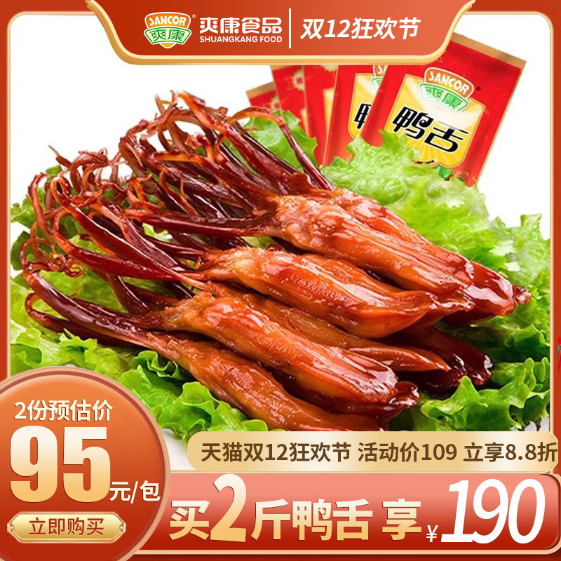 爽康大鸭舌温州特产温州鸭舌开袋即食酱鸭舌头五香味零食散称500g