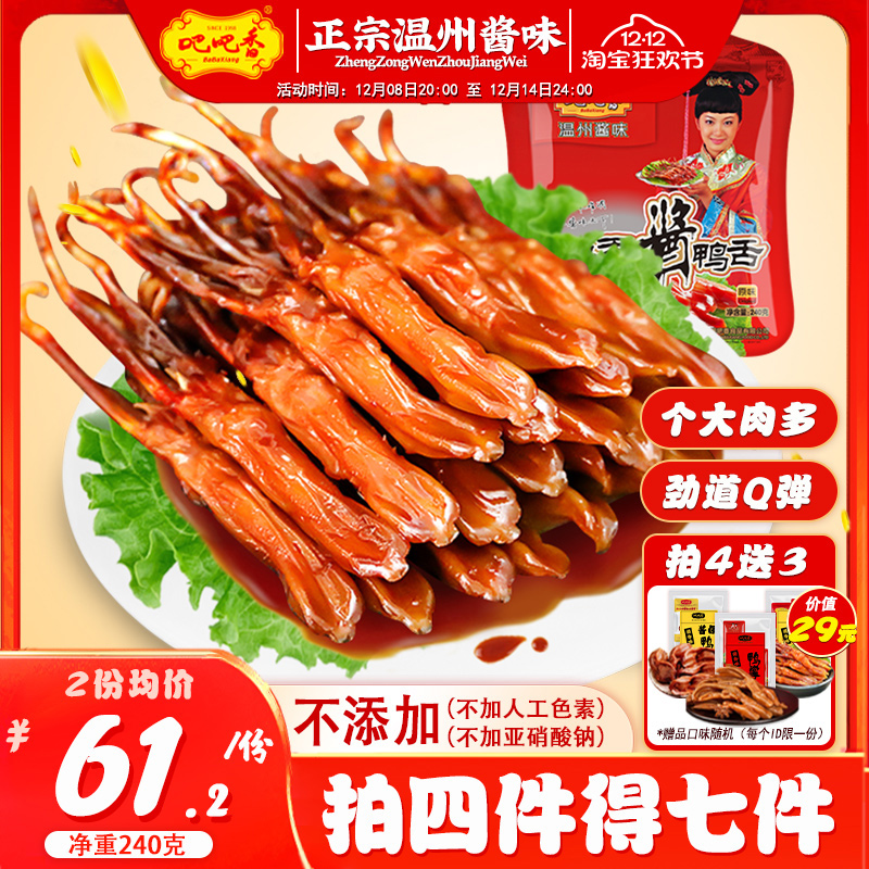 【吧吧香_精品大号酱鸭舌】净重240g 温州鸭舌特产休闲小吃零食