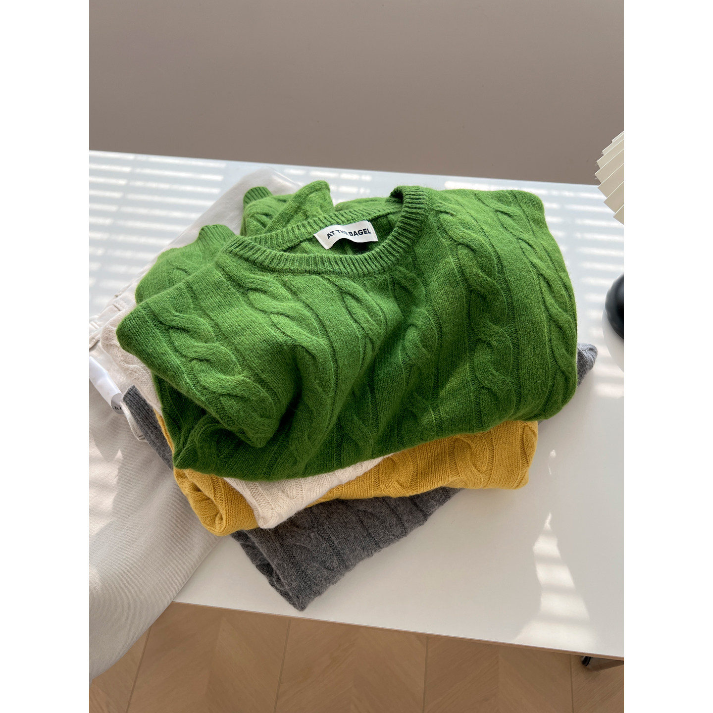 复古麻花减龄圆领套头羊毛毛衣女宽松慵懒文艺减龄小众学生秋冬潮