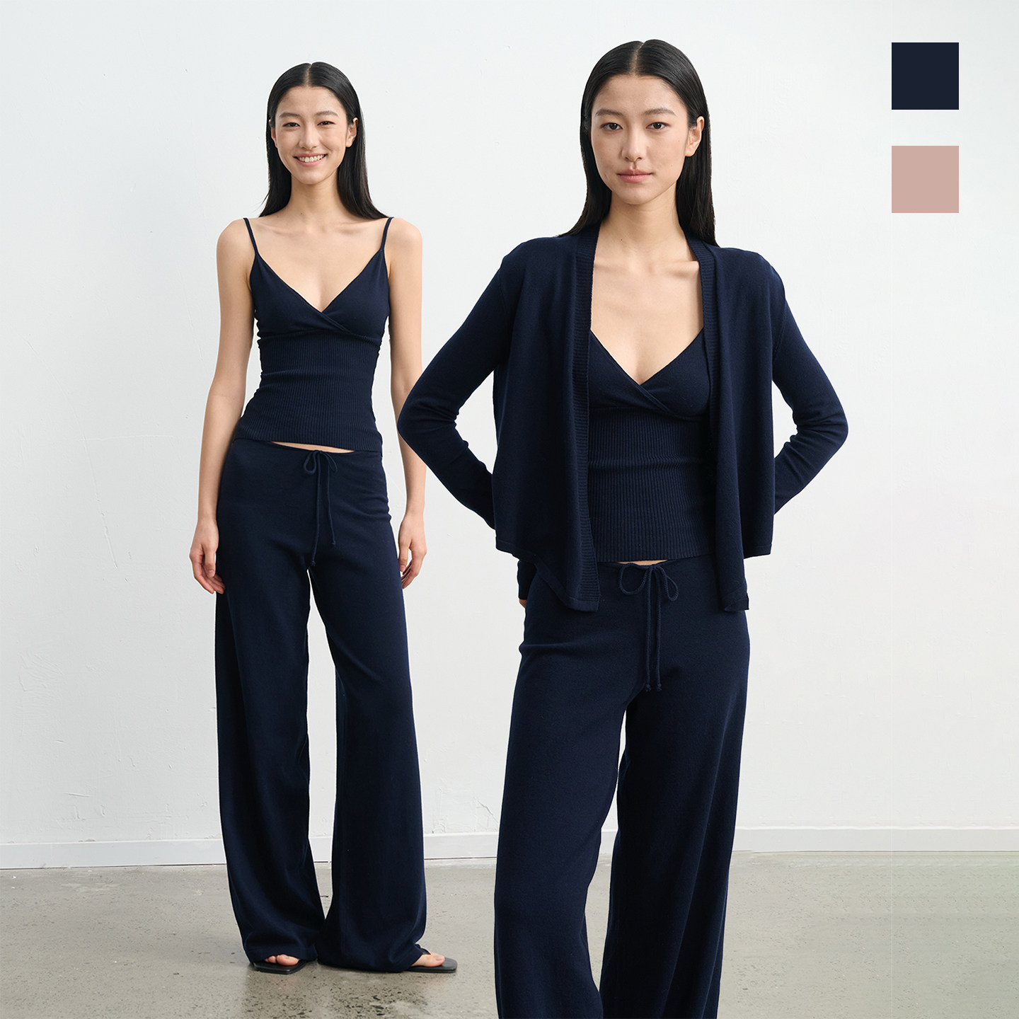 LINY LIBERTY 设计感修身短款针织吊带背心女开衫阔腿长裤套装