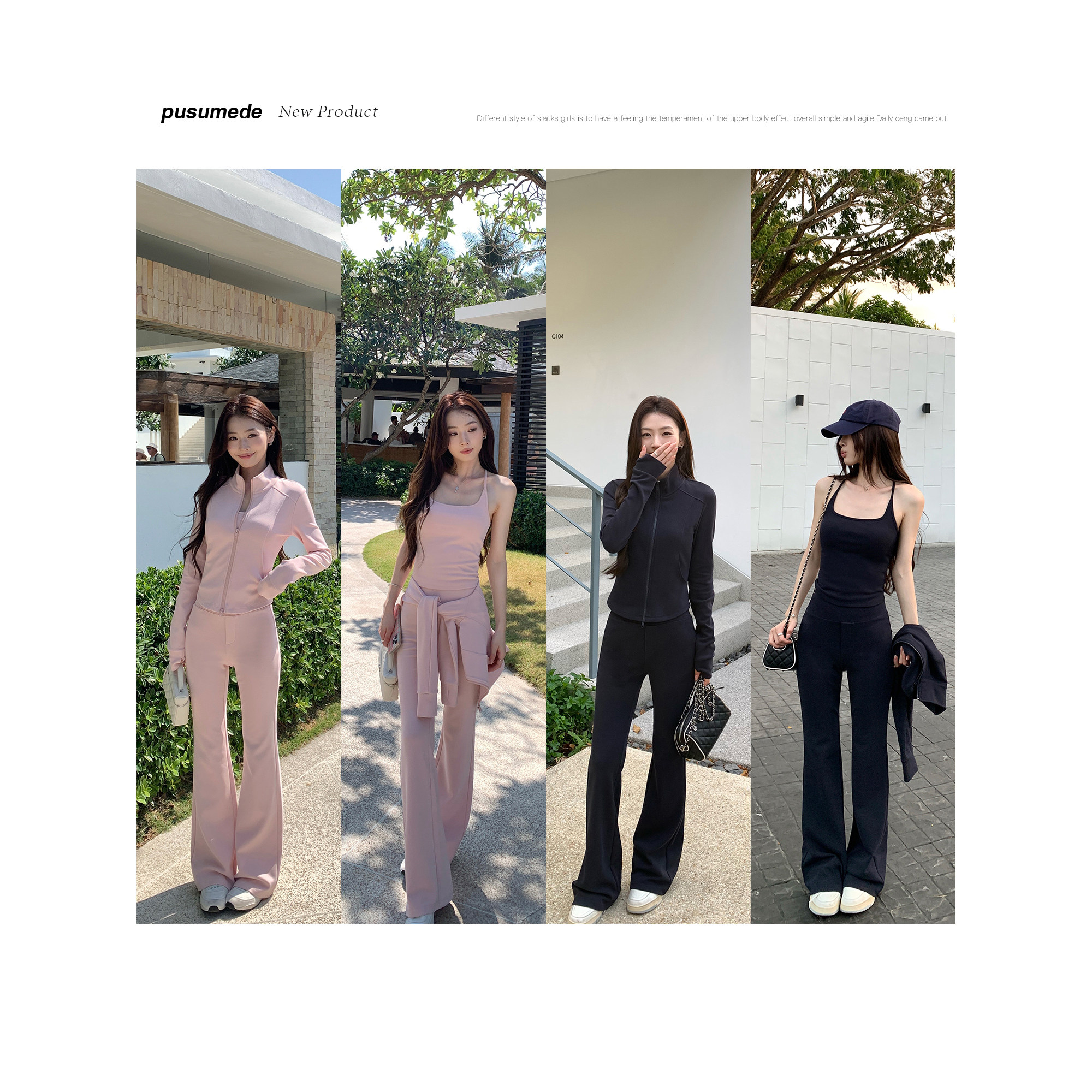 pusumede 自在惬意 休闲短款拉链外套女背心吊带/微喇裤运动套装