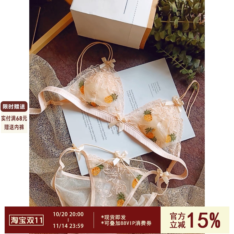 刺绣蕾丝内衣女无钢圈镂空性感纯欲风透明法式三角杯小胸文胸套装