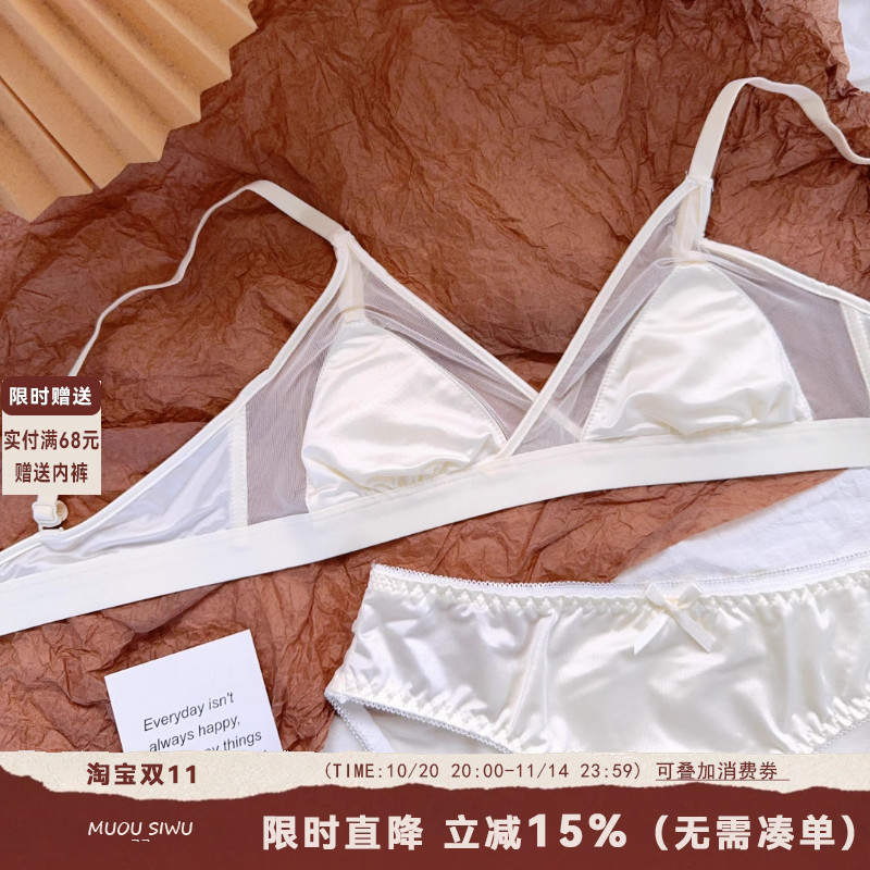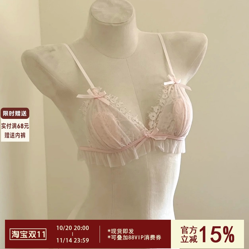 法式性感纯欲三角杯内衣女超薄款蕾丝若隐若现无钢圈小胸文胸套装
