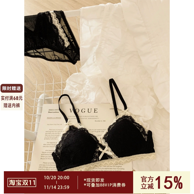 名媛舞会 超薄法式蕾丝三角杯内衣女性感纯欲无钢圈小胸文胸套装