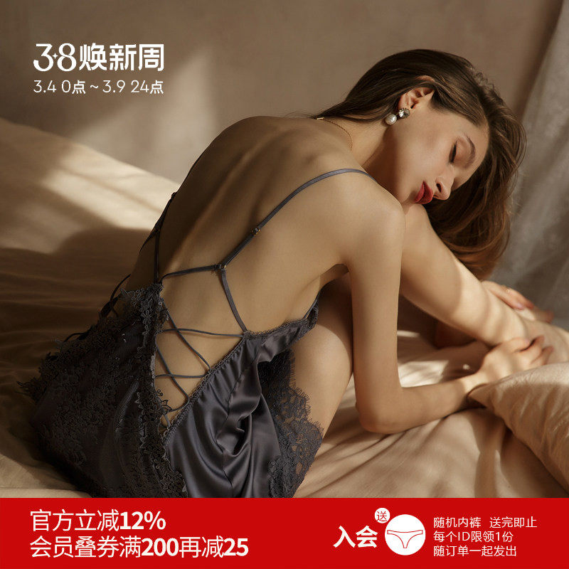 雅小姐性感吊带睡裙女秋2020新款带胸垫薄款冰丝性感诱惑极度睡衣