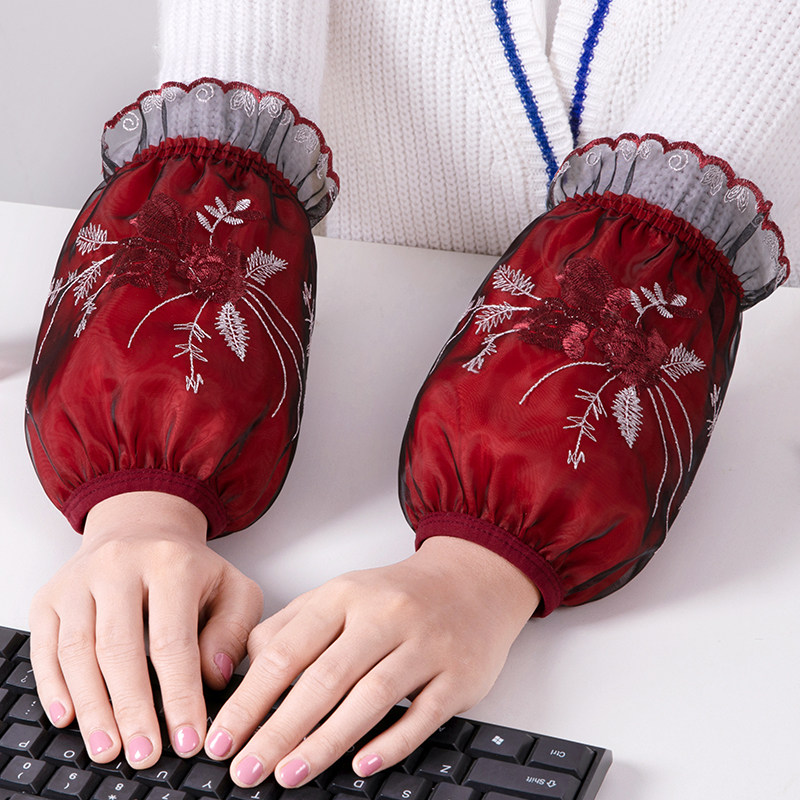 短款蕾丝防水袖套成人工作上班办公护袖女秋冬厨房专用防油手袖头