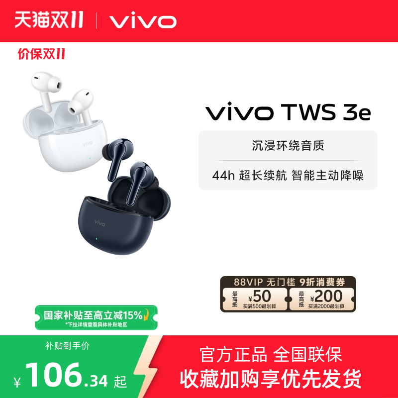 vivo TWS 3i无线蓝牙耳机tws3i通话降噪入耳式2024新品vivo耳机