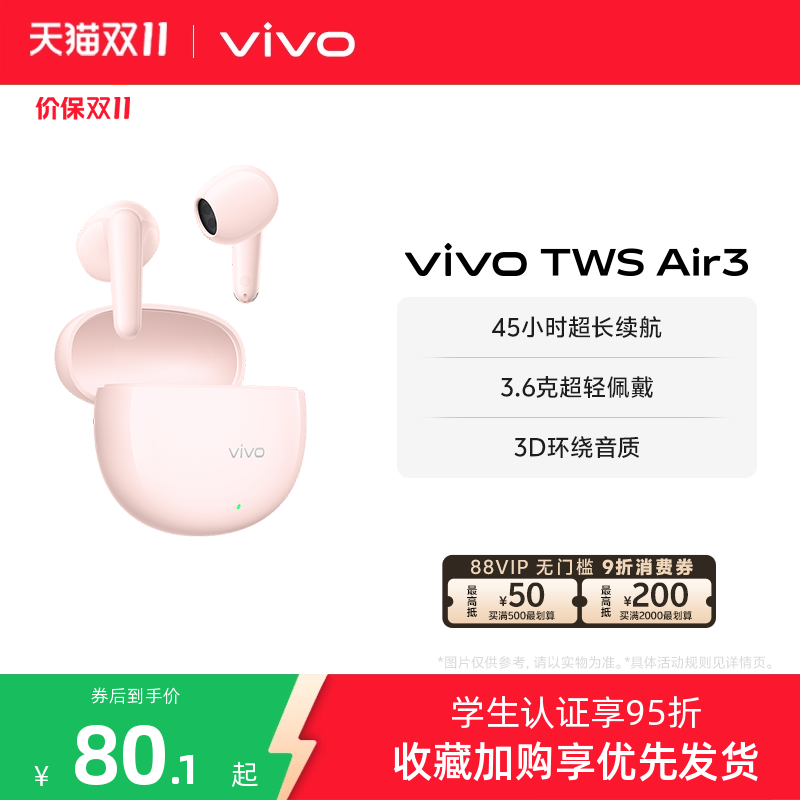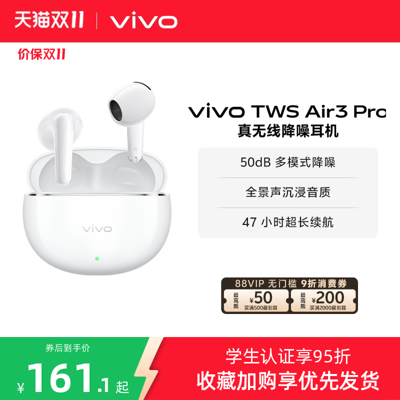 【新品耳机】vivo TWS Air3 Pro半入耳蓝牙耳机安卓苹果兼容学生