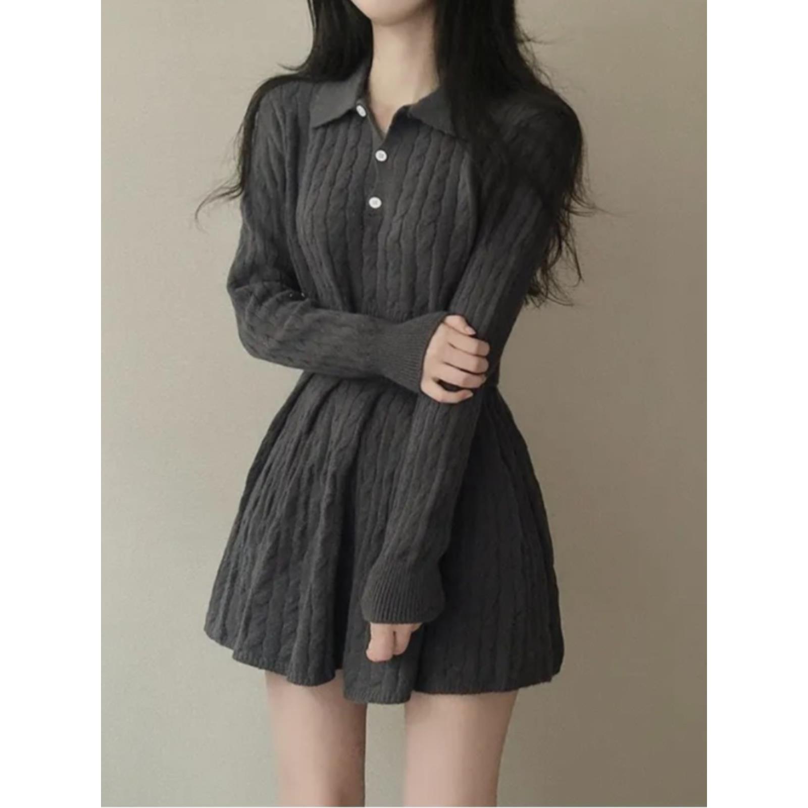 韩版chic麻花毛衣针织polo领上衣高腰百褶裙小个子两件套装女秋冬