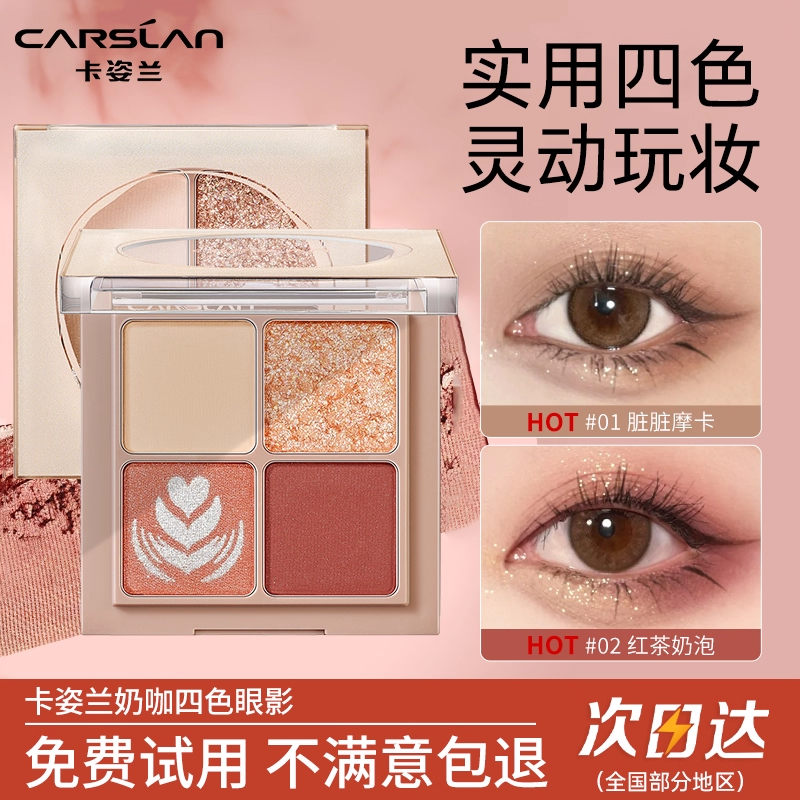卡姿兰四色眼影盘奶茶大地色ins闪粉平价学生正品官方2025新款女
