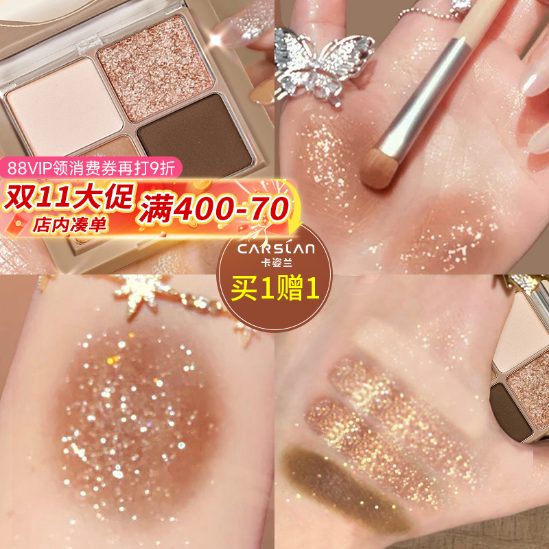 卡姿兰四色眼影盘大牌亮片珠哑光大地色亮晶晶爆闪2025年新款懒人