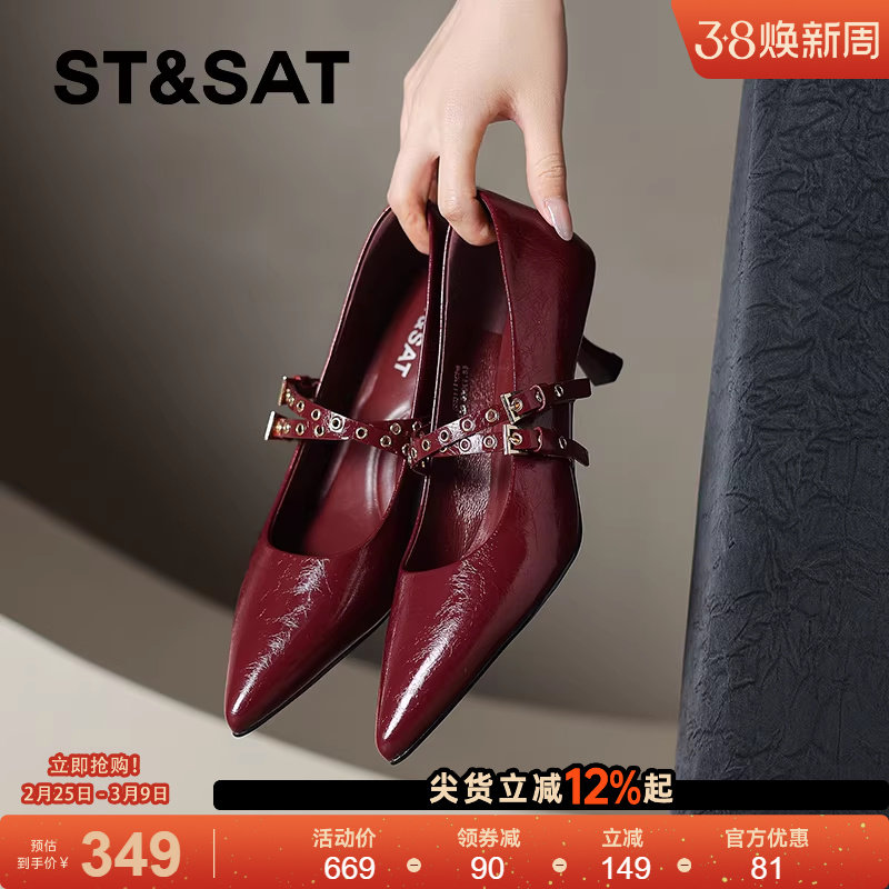 达芙妮红底裸色高跟鞋女尖头细跟黑色气质漆皮单鞋2026新款春皮鞋