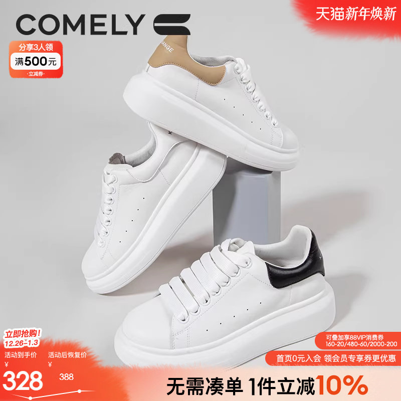 康莉板鞋女厚底鞋春秋新款真皮拼接小白鞋舒适百搭运动休闲鞋女鞋