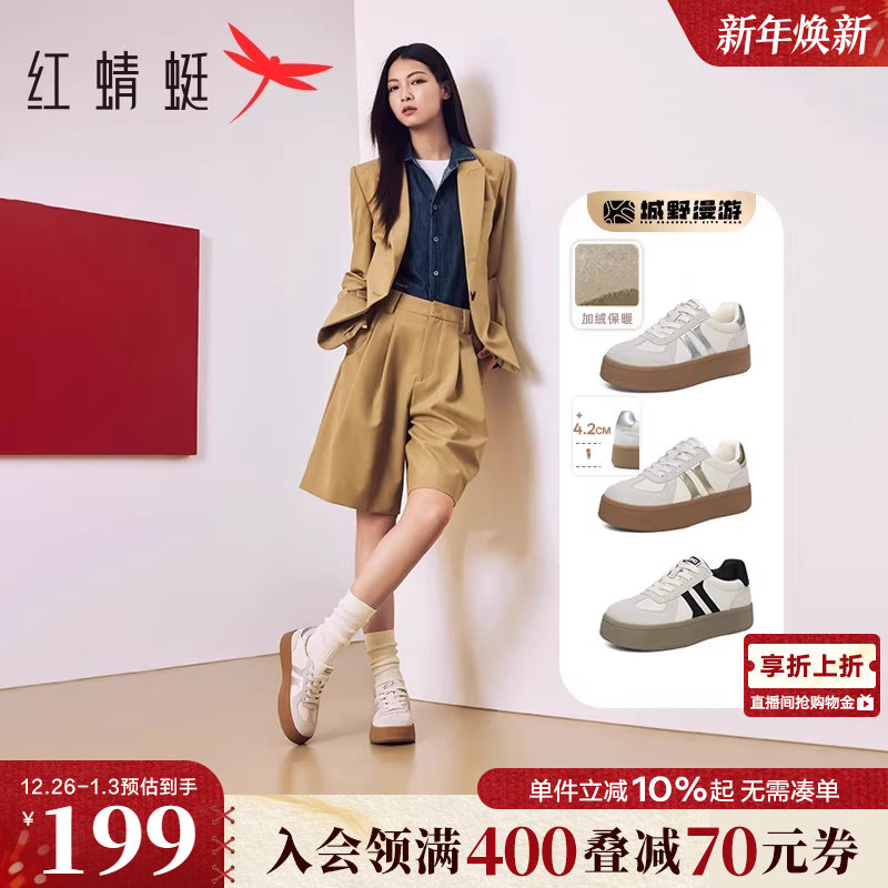 Baby同款红蜻蜓野子德训鞋春秋季女款小白鞋复古厚底增高休闲板鞋