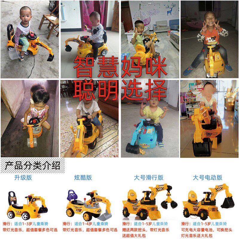 挖掘机大号玩具车可坐可骑儿童x扭扭车电动车挖土挖挖机36岁耐摔
