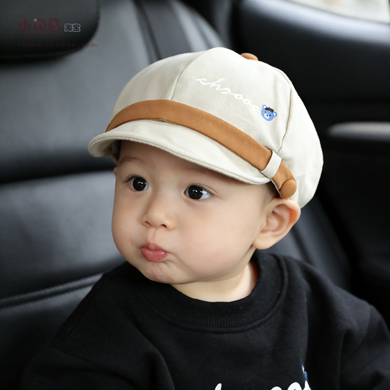 婴儿贝雷帽春秋季超萌可爱小熊反戴前进帽子男童宝宝凹造型画家帽