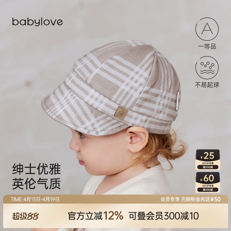 babylove婴儿帽子春秋季纯棉鸭舌帽男宝宝软檐帽英伦风外出贝雷帽