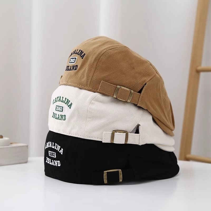 日系反戴儿童洋气前进画家春秋季宝宝刺绣鸭嘴字母帽子贝雷帽复古