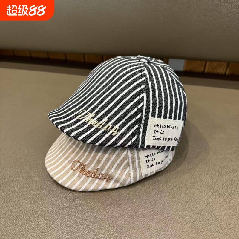 复古条纹儿童帽子春夏薄款遮阳防晒贝雷帽男女宝宝出游百搭前进帽