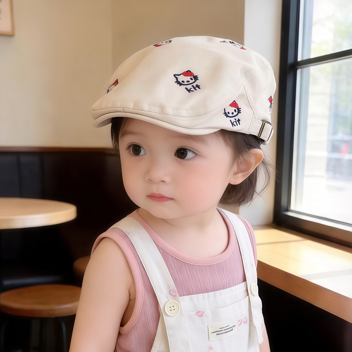 宝宝帽子春秋季薄款防晒贝雷帽男女童可爱卡通休闲英伦鸭舌前进帽