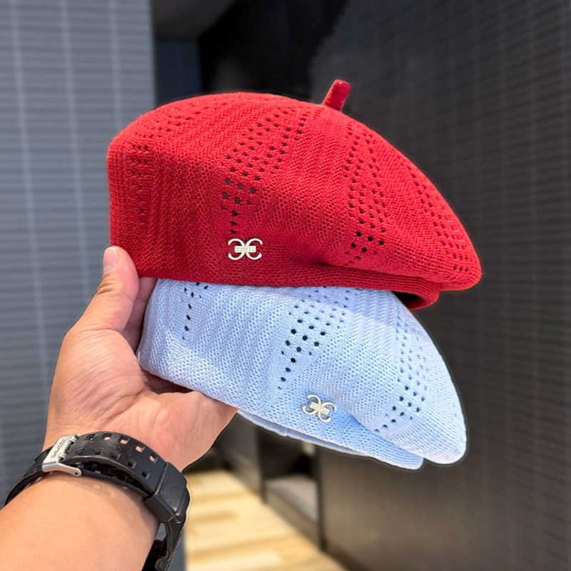 韩版时尚小标镂空贝雷帽子女夏季甜美透气画家帽显脸小报童帽百搭