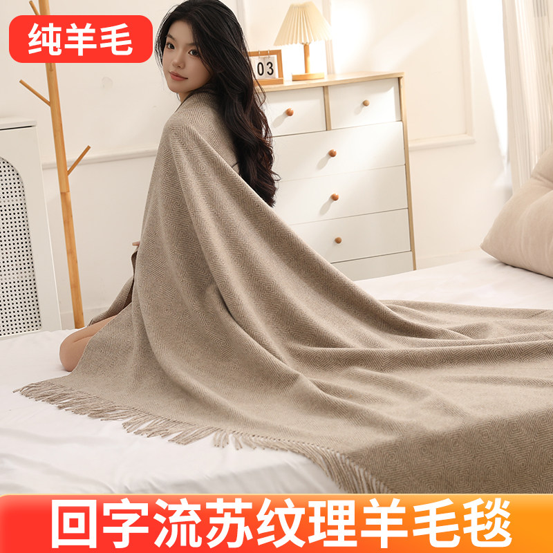 日系雅致米色系人字纹真丝羊毛大方巾秋冬保暖款丝绒围巾披肩两用