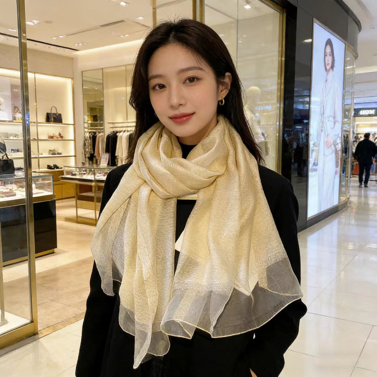 韩国羊毛真丝长方形丝巾女2026春夏新款潮百搭披肩两用高级感围巾
