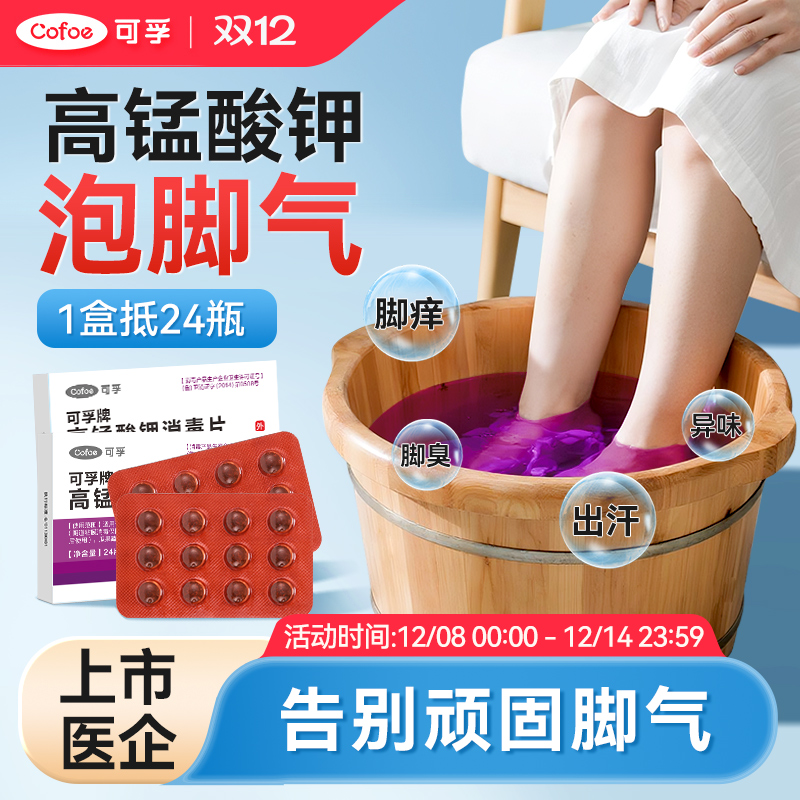 可孚高锰酸钾片泡脚去真菌脚气消毒液杀菌止痒水脱皮烂脚专用溶液
