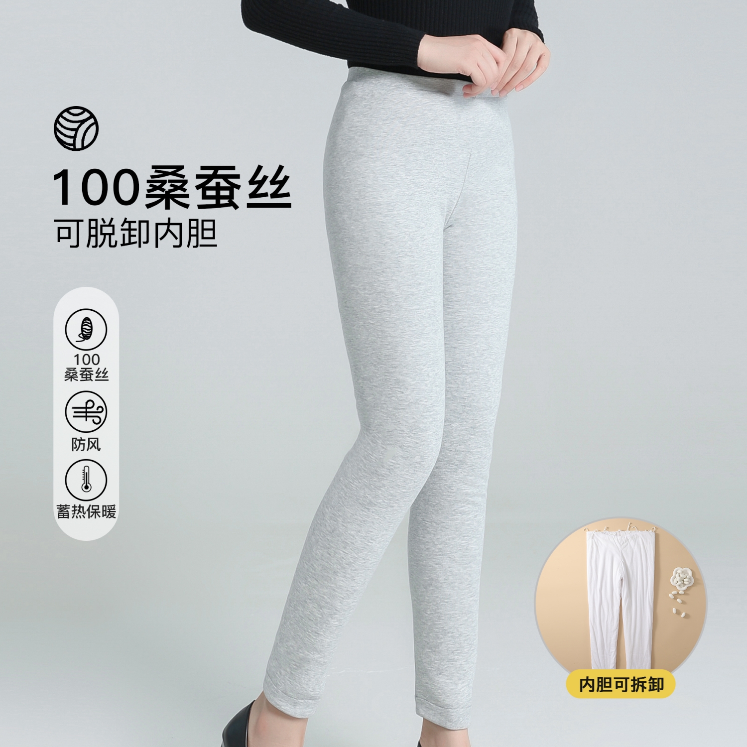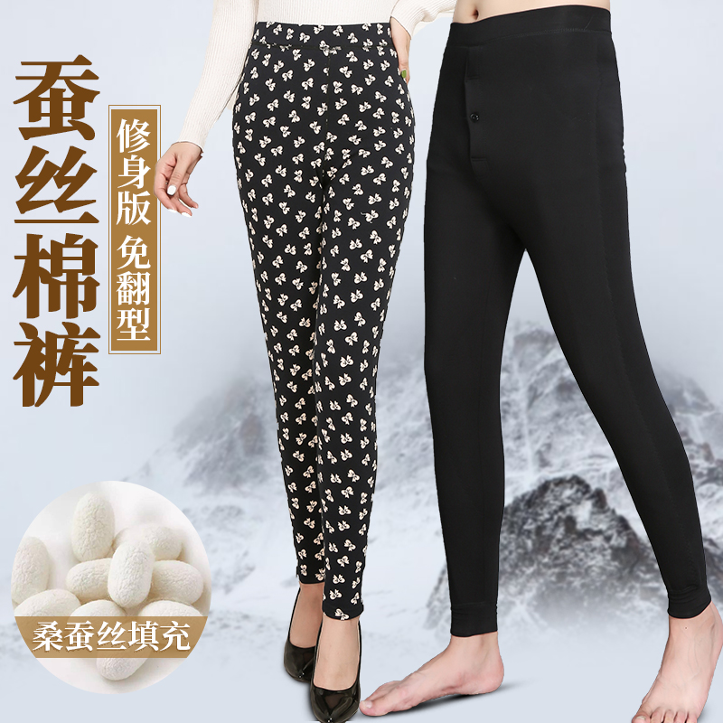 100桑蚕丝修身棉裤男冬季女护膝加厚光面内穿保暖裤女士高腰显廋