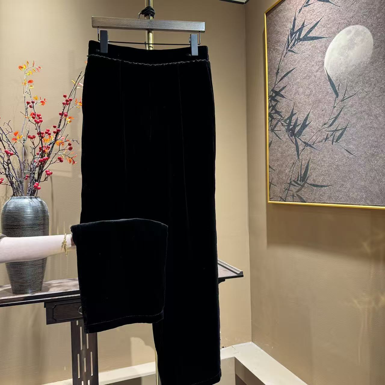【中先森】100%桑蚕丝丝绒黑色休闲裤棉裤女冬百搭加棉直筒裤669